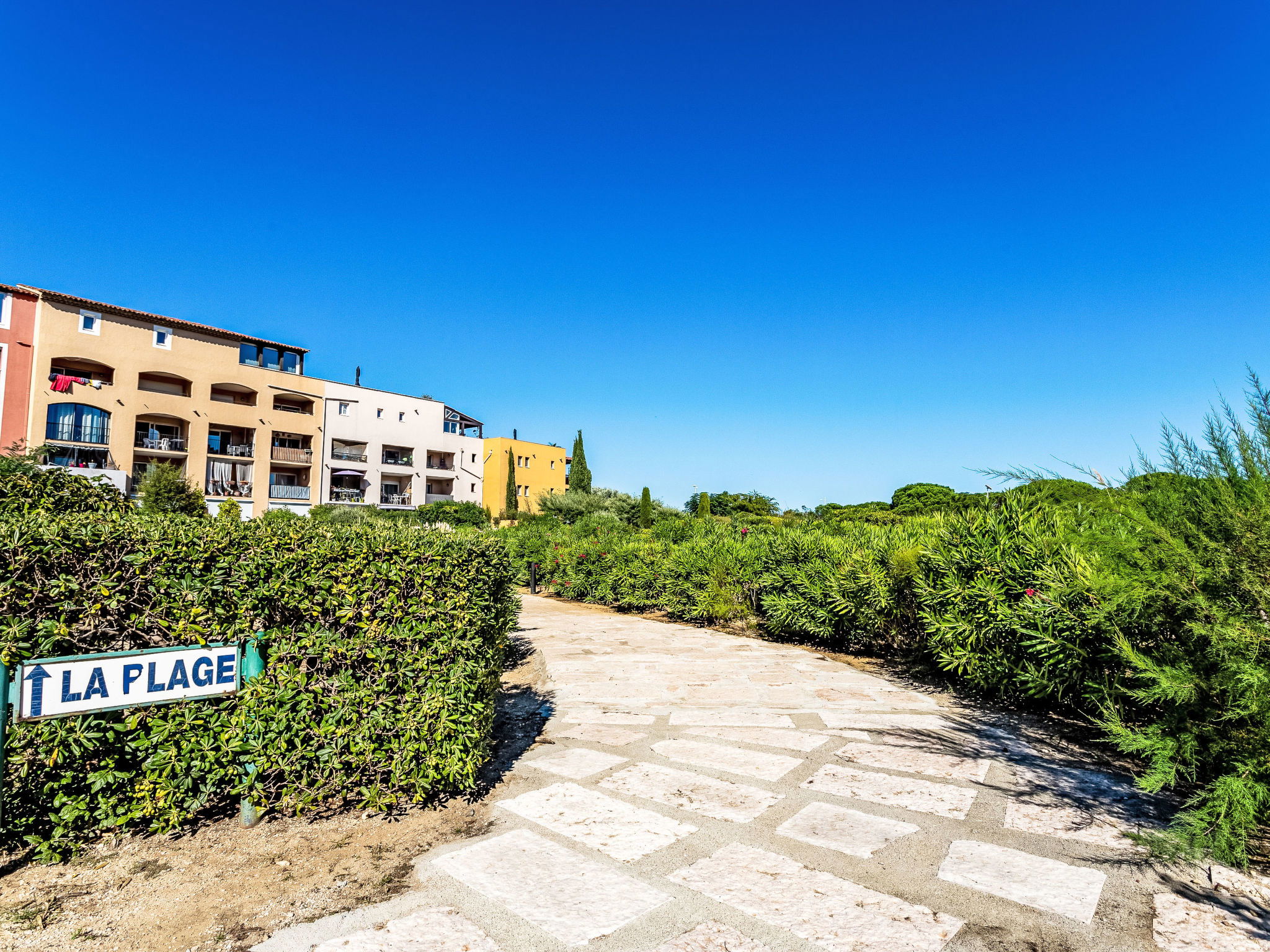 Marines de Gassin à 3 km de Saint-Tropez: Résidence "Les Marines". À 100 m de la mer, à 100 m de la plage. En commun: parc, piscine (650 m2, disponibilité saisonnière: 01.Jun. - 30.Sep.). Bassin pour les enfants, tennis, ping-pong, espace de jeux pour les enfants. Infrastructures de la résidence: ascenseur. Parking public. Magasins 200 m, magasin d'alimentation 1 km, supermarché 1 km, restaurant, bar 250 m, arrêt de bus "Marines de Gassin" 450 m, plage de sable "Les Marines de Gassin" 100 m. Port plaisance 200 m, ecole de voile 150 m, golf miniature 1 km, piste cyclable 10 km. Attractions à proximité: Parc d'attractions Azur Park 1 km, Saint Tropez 3 km, Sainte Maxime 10 km, Cannes 84 km, Nice 110 km. Les lacs connus sont facilement accessibles: Le Lac de Sainte Croix 89 km. Région de randonnées: Massif de l'Esterel 50 km. Veuillez noter: D’autres appartements sont également proposés à la location dans cette maison de vacances.