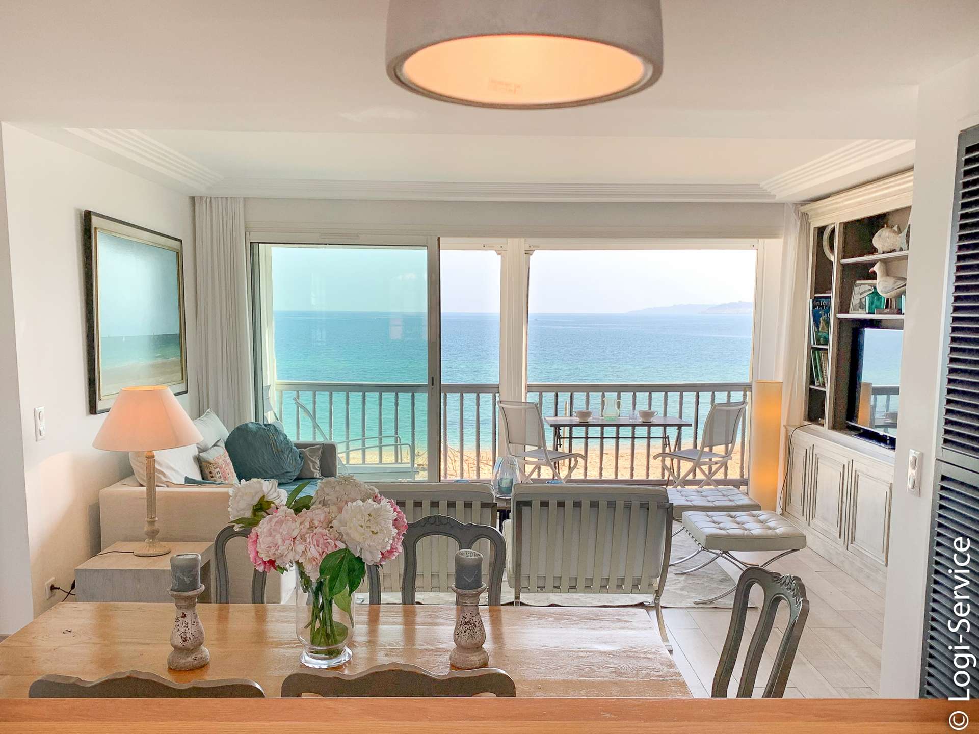 Au coeur du Golfe de Saint Tropez, ce superbe appartement climatisé de 3 chambres, entièrement renové en 2015, se situe au deuxième étage d'un immeuble sécurisé avec accès direct sur la plage. Parfait pour des vacances confortables en famille, cet appartement se compose d’une entrée, une cuisine tout équipée s'ouvrant sur le séjour et le balcon afin d'admirer une magnifique vue mer panoramique sur le Golfe de Saint Tropez, une chambre de maître avec salle de douches et toilette, les deux autres chambres se partageant une deuxième salle de douches et un toilette indépendant.