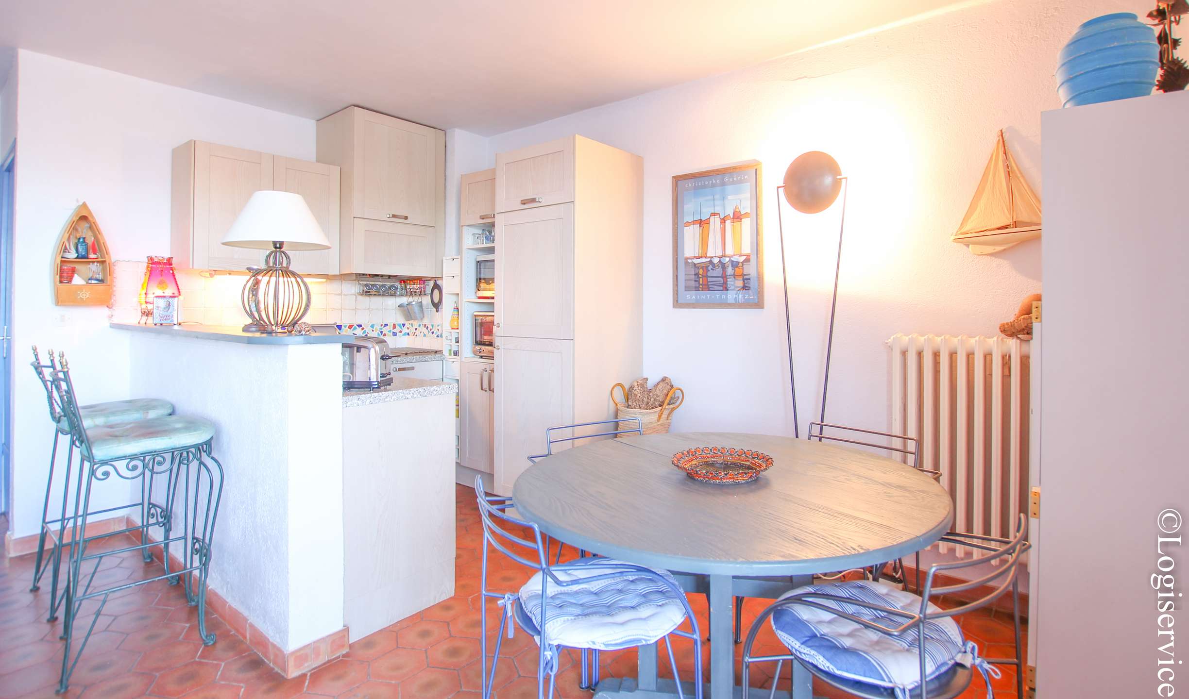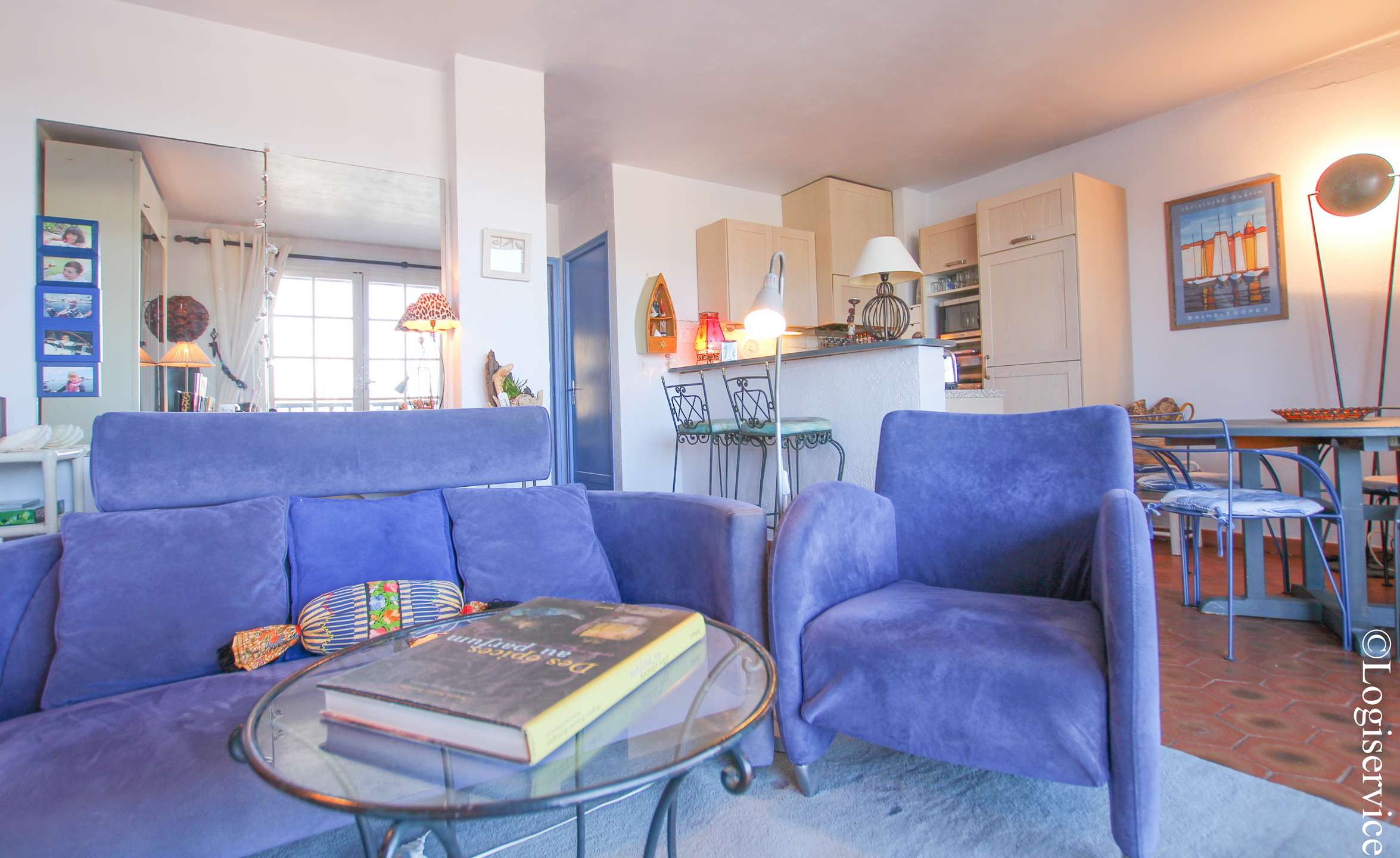Il se compose d'une entrée, séjour avec une cuisine équipée ouverte, de deux chambres à coucher et d'une salle de bains avec toilettes. Balcon exposé Est avec magnifique vue panoramique sur le Golfe de Saint-Tropez.