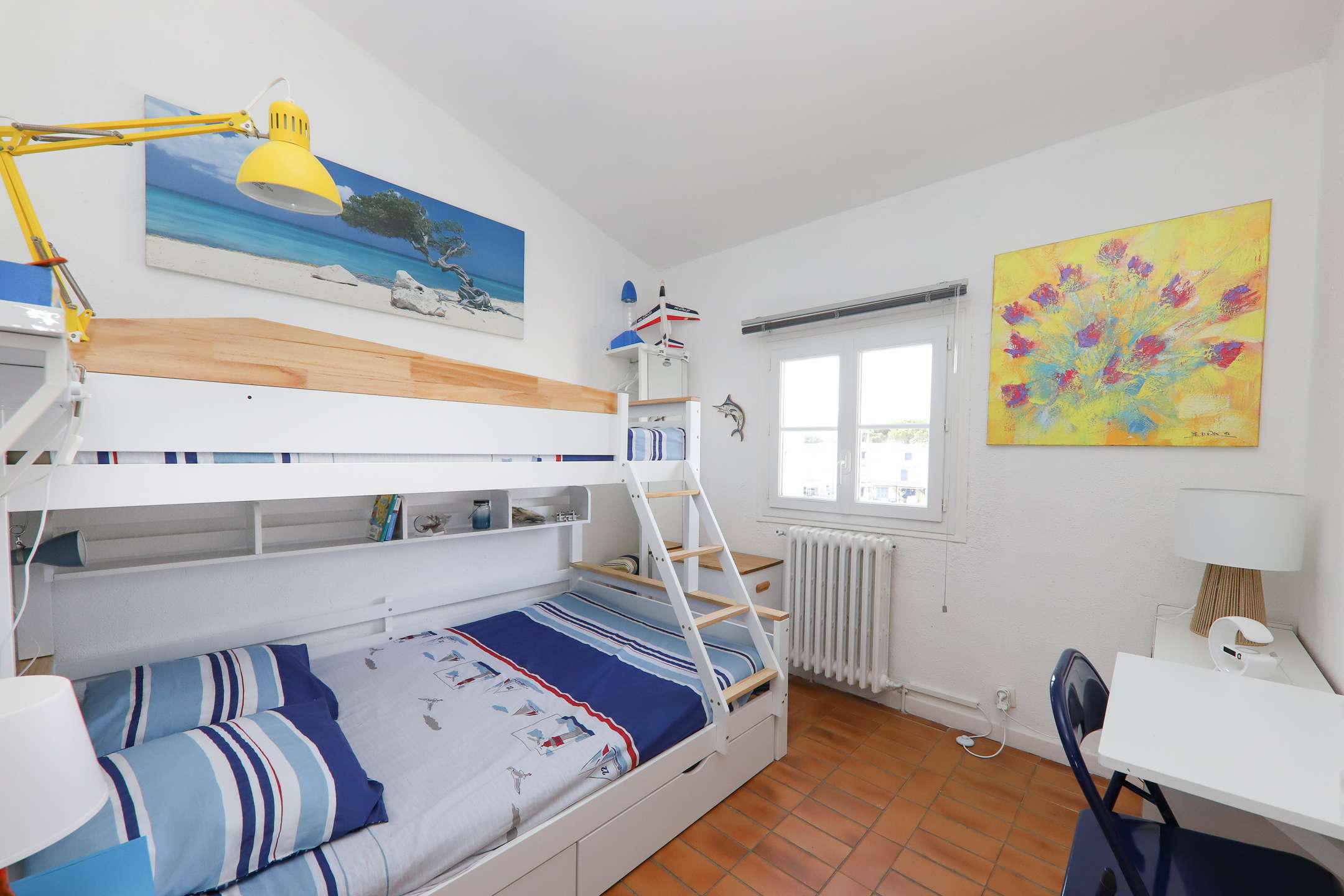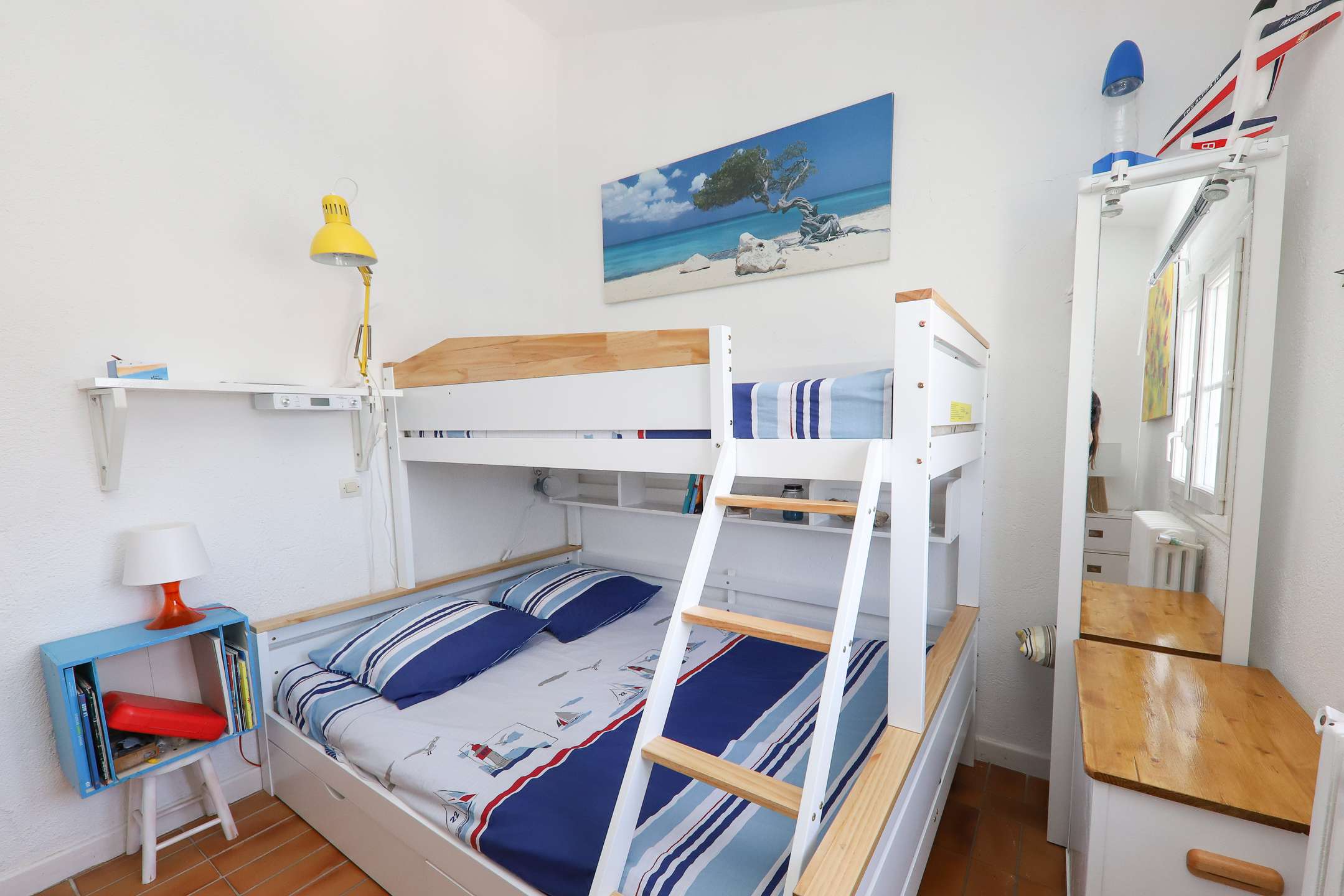 Au deuxième et dernier étage, il se compose d'une entrée desservant un séjour avec cuisine entièrement équipée et d’un balcon avec vue sur l'entrée du port, 2 chambres à coucher et une salle de douches avec toilette.